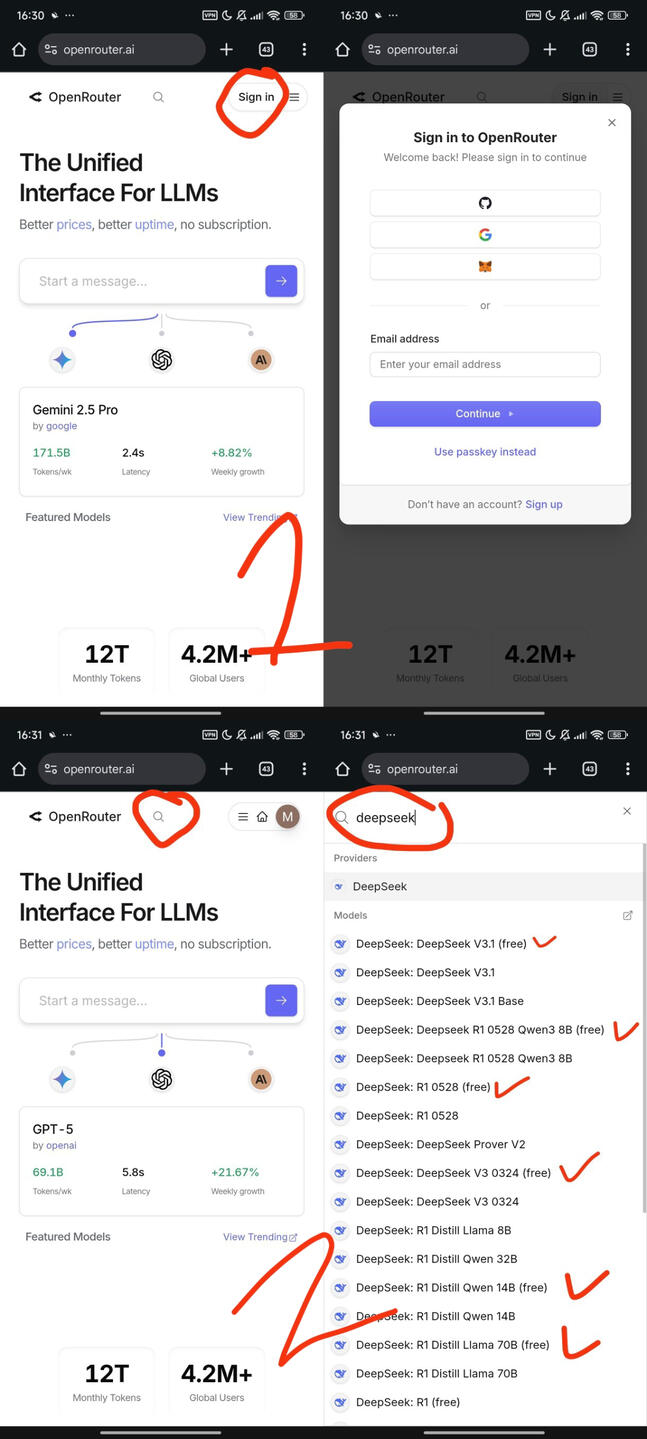 https://openrouter.ai/ and create your own account, use gmail or whatever suited you.2.xiaomi/mimo-v2-flash:freekwaipilot/kat-coder-pro:freez-ai/glm-4.5-air:free