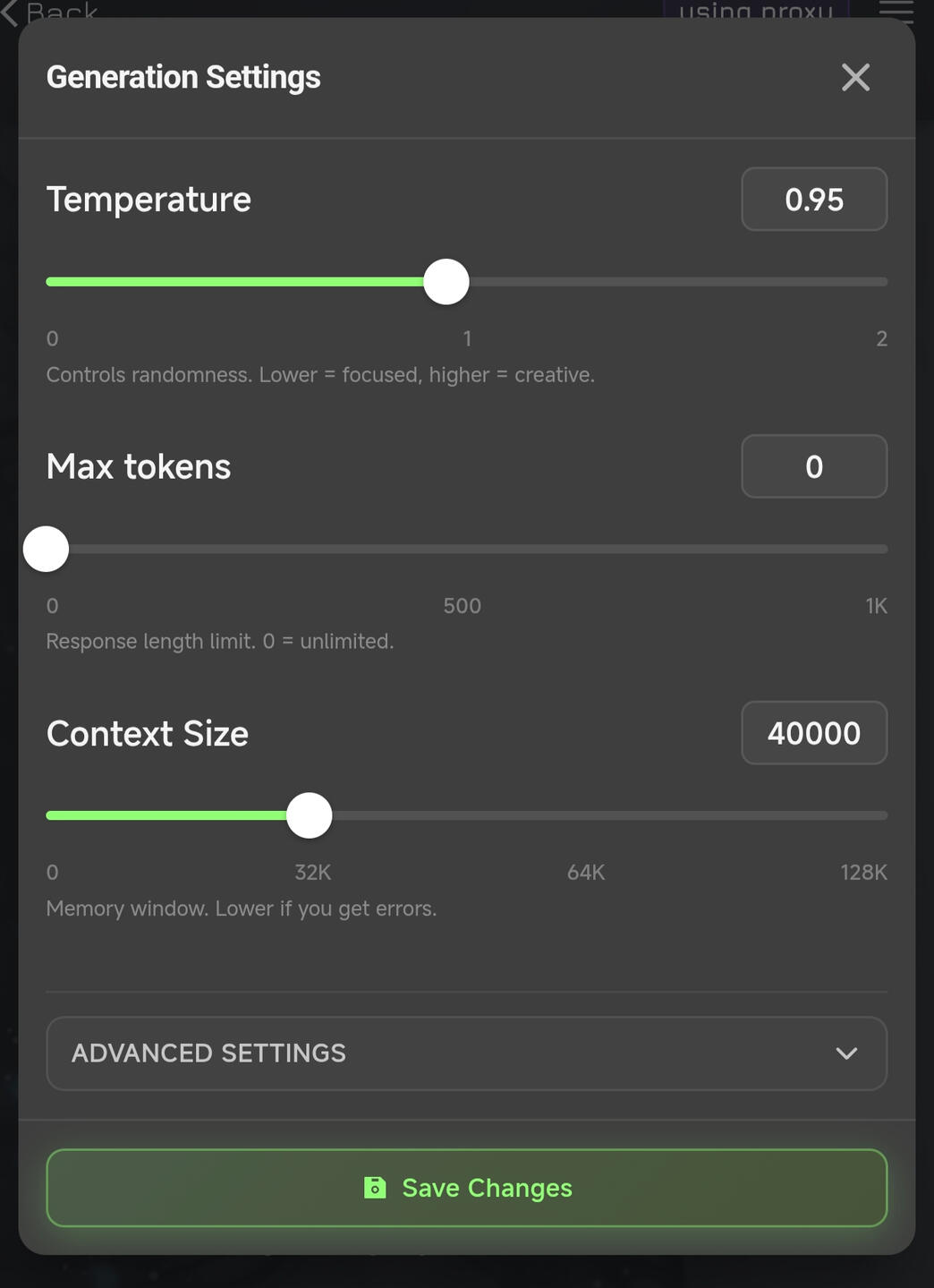 Temperature/Max Tokens/Context SizeFirst of all, I want to say that in my opinion, how the roleplay went is depends on the person. Meaning you shouldn't be afraid to make your own experiment with the temperature! As we all know, lower temp (<1) is for more logical response and higher temp (>1) for more creative response.For now I usually don't have high temp, in between 0.75-0.9For Max Tokens I always went to 0 aka UnlimitedFor Context Size, I used to go for 30k or 40k for starter. I gradually increased it when my chat reached 60+ message